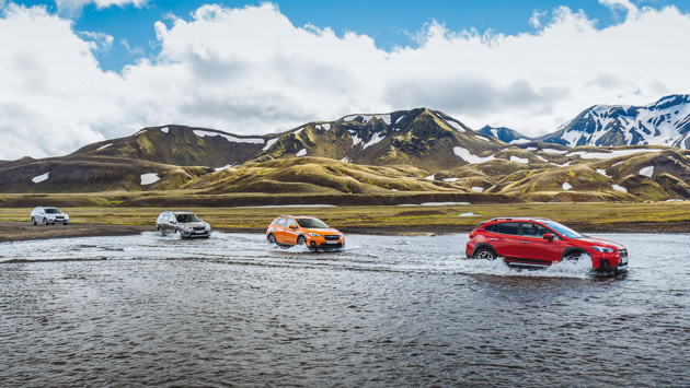 Коричнево-ржавый песок наседает на зеленые холмы, где-то внизу булькает кипящая серая густая жижа вместе с какой-то белой пеной, а в воздухе — стойкий запах протухших яиц, вышибающий слезу. Если вдруг кто-то с тоской и ностальгией подумал: «Норильск», то придется их разочаровать. В этот раз мы не только не в России, но и даже не на одном континенте с вами. Это — Исландия. Страна льда, пламени, мечта многих путешественников и родина вот таких геотермальных штуковин, которые резко контрастируют красотой и тишиной, разливающейся вокруг. Исландия… Первое впечатление, особенно после пятичасового ночного перелета и досмотра вещей всех пассажиров по прибытии, так себе. Ты почти уверен, что это место переоценивают, словно безглютеновые продукты. Эйяфьядлайёкюдль, Лаунгйёкодль, Сельяландсфосс, Ландманналаугар, Хьяулпарфосс, Клейварватн, Хейлишеди, Рейнисфьяра, Скогарфосс, Холаскьоль, Ёскьюватн, Оуфайруфосс, Киркьюбайярклёйстюр — как тут можно куда-то добраться, если ты не то что произнести это не можешь, но и в навигатор всё забить получится не с первого раза. А тут еще полное отсутствие ночи готово добить тебя, доведя до истерики: время почти двенадцать часов ночи, но солнце еще даже не зашло за горизонт — Полярная ночь. Чертов ярко-оранжевый диск светит в окно гостиницы, пробивается сквозь шторы и не дает организму вернуться в привычный график, ведь в Москве сейчас уже три часа ночи. Господи, скорее бы следующий день. «Вам невероятно повезло», — удивленно говорили нам все. Целых два потрясающе солнечных дня, чистое голубое, без единого облачка, небо и плюс 16 градусов Цельсия, да еще и почти без ветра. Это резко контрастирует с тем, к чему тебя готовил интернет — фотографиями со всей этой запредельной хмарью, туманами, дождями и серостью. Этот мрачняк выглядит сурово и впечатляюще — настоящий северный край. Непростой, как он есть. С характером. Но при солнечном свете Исландия преображается и выглядит еще круче, поверьте. Особенно если ты здесь вживую, а не смотришь на всё это с экрана монитора. В двух вещах интернет точно не ошибается: в том, что Исландия и вправду потрясающая, и в том, что без машины здесь не выжить. Здесь нет поездов и общественного транспорта (даже «Убера» нет!), поэтому способов добраться куда-либо за пределы Рейкьявика — это автомобиль, частная авиация (грунтовых взлетных полос полно) как вариант для самых обеспеченных и, если окончательно и бесповоротно сойти с ума, велосипед. Поэтому если вы так же, как и мы любите машины, то выбирайте именно такой вид транспорта. Но будьте готовы к некоторым особенностям. И тратам. Во-первых, желательно, чтобы под рукой было что-нибудь высокое и с полным приводом. Но не стоит вестись на рекламу и арендовать монстр-траки на колесах размером с двухэтажный дом или большие внедорожники от местных ребят из Arctic Trucks. Как показала практика, летом здесь достаточно и обычного кроссовера. Для этой поездки у нас в распоряжении была вся линейка вседорожников Subaru — XV, Outback и Forester, причем без какой-либо специальной подготовки. Большинство дорог в Исландии достаточно «цивилизованные». К основным раскрученным туристическим достопримечательностям ведут асфальтовые шоссе с хорошим покрытием, а к другим — укатанные грунтовые дороги. Но если хочется увидеть чуть больше, отклониться от заезженного турис