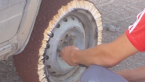Авторы канала «Гараж 54» опубликовали видео своего нового проекта — в этот раз они сделали колесо из спичек, установили его на ВАЗ 2107, подожгли, а затем попробовали прокатиться. Что удивительно, спички от такого испытания почти не пострадали. По словам авторов, для колеса потребовалась 21 тысяча спичек. Сначала к штамповке приварили металлическую пластину, а сверху приклеили спички. После установки блогеры решили не рисковать и проверить, как поведет себя колесо на поднятой машине — отлетели всего несколько спичек, которые были плохо закреплены. Но и после этого опускать автомобиль и делать на нем тестовый заезд не рискнули. Вместо этого блогеры решили использовать спички по их прямому назначению — поджечь их. Колесо моментально вспыхнуло и погорело несколько секунд, прежде чем было потушено. В итоге автомобиль все же решили опустить на землю и проехать на нем несколько пробных метров. К удивлению самих создателей, в ходе езды отлетела только металлическая пластина от диска, а приклеенные к ней спички остались нетронуты. Несмотря на то, что многие обуглились, они выдержали весь автомобиля. Теперь авторы канала решили пойти еще дальше — по их словам, если видео сможет набрать миллион лайков, они сделают все четыре колеса из спичек, подожгут их и устроят небольшой ночной заезд. Блогер снял на видео, как сгорел его Chevrolet Corvette В начале августа в Сети появилось видео, где блогер из Нижнего Новгорода едет по городе на самодельном Mercedes-Benz G-Class, который он собрал из картонных коробок и велосипеда. Правда, после публикации ролика автором «Гелика» заинтересовались сотрудники местного ДПС.
