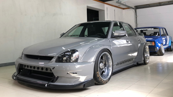 Конечно, это пока не Liberty Walk, но работу ребята из Самары проделали просто невероятную. Все началось с покупки гоночного обвеса от Приоры WTCC, а закончилось тем, что от оригинальной машины здесь осталась только крыша. Внимание к деталям и аккуратность работы поразительная: например, переднее крыло и расширение арки — на самом деле единый элемент, который просто стилизовали под два, скрепленные болтами. И таких необычных деталей здесь куча — обо всех самых интересных мы рассказали в нашем новом видео.