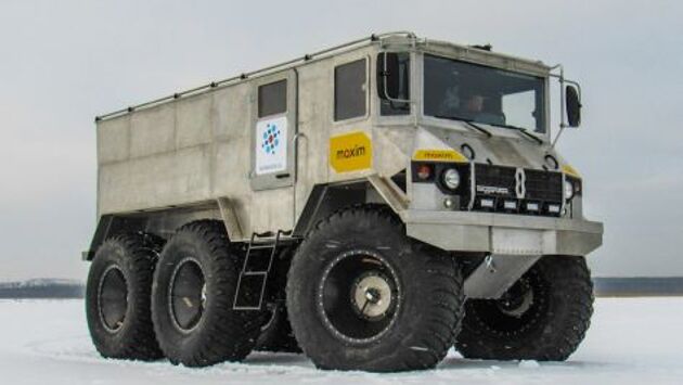 Россия - огромная страна. В силу своего северного расположения у нас много мест, где трассой является таёжная просека или колея в тундре. И вот на выставке в Тюмени, которая будет проходить с 17 по 19 сентября в рамках нефтегазового форума, покажут российский универсальный вездеход «Бурлак». Грузовик успешно сочетает в себе дом на колесах, вездеход, амфибию и способен автономно преодолевать значительные дистанции по бездорожью. Подробнее о других его достоинствах читайте дальше. Общая информация. Дом на колесах «Бурлак» выпускается в Екатеринбурге компанией «Вездеходы Макарова». Изначально было освоено производство промышленной, грузопассажирской и экспедиционной модификации 6 х 6. Сравнительно недавно (если быть точным, весной текущего года) к ним добавился экспедиционный вариант вездехода 4 х 4. Версия 6 х 6 выделяется дополнительным пространством, которое по желанию заказчика может быть отведено для грузов, оборудования, пассажирских или спальных мест. Предусматривается также возможность установки кухни, душа, биотуалета, а также приспособления для растапливания снега (ведь в пути нужна горячая питьевая вода). Грузоподъемность. Для версии 6 х 6 она зависит от типа дорожного покрытия, который предстоит преодолевать. Если речь идет о твердом грунте, «Бурлак» может взять на борт 2 тонны груза и 9 человек экипажа. В случае передвижения по воде или зыбкой почве ресурс составит тонну груза и 5 человек. Флагманская версия вездехода рассчитана на 15 посадочных мест. Восемь из них можно превратить в спальные. Вариант 4 х 4 приспособлен для тонны груза и перевозки небольшой группы людей. Такая модификация создана для тундры или тайги. На ней могут передвигаться охотники, лесники или спасатели. Топливо и скорость передвижения. Бак вездехода рассчитан на 720 литров горючего. Его запаса должно хватить на 2,5 тысячи километров пути. Предельная скорость составляет 80 км/час. Если же автомобиль движется по воде как амфибия, то максимум будет 3 км. Установленный винт увеличивает скорость вдвое. Шины. Они заслуживают отдельного разговора. Покрышки низкого давления изготовлены по специальному заказу. Конструкция грунтозацепов устроена так, что при резком сбросе давления покрышки трансформируется в некоторое подобие гусениц. Происходит это на рыхлом снегу или зыбком грунте. В результате почве не наносится особого ущерба. В варианте 6 х 6 общее водоизмещение колес составляет 7,2 тонны. Наличие дополнительных поплавков в колесных дисках увеличивает данный параметр до 8,8 тонн. Эпилог. «Бурлак» специально создавался для того, чтобы люди в труднодоступных северных районах не были оторваны от внешнего мира. Машина показала свою надежность при испытании в суровых природных условиях.