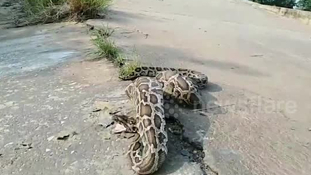 Огромный питон целиком съел петуха на глазах у фермера