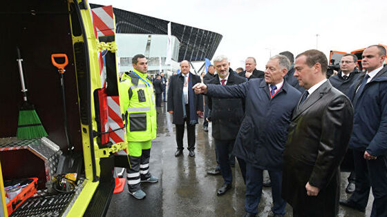 ЕКАТЕРИНБУРГ, 16 окт - РИА Новости. Председатель правительства РФ Дмитрий Медведев прибыл на международную специализированную выставку "Дорога-2019" в Екатеринбурге и начал осмотр ее экспозиции. Медведев вместе с вице-премьером Максимом Акимовым и главой Минтранса РФ Евгением Дитрихом в сопровождении начальника Главного управления по обеспечению безопасности дорожного движения Михаила Черникова осмотрел представленные полицейские автомобили Skoda и УАЗ. Он также осмотрел салон выставленного у комплекса "Екатеринбург-ЭКСПО" специализированного автобуса-тренажера "Школа дорожной безопасности", созданного компанией Huyndai. Автобус наглядно демонстрирует действие ремней безопасности при ДТП или резком торможении: он оборудован специальной системой имитации отрыва сидений в момент столкновения, укомплектован генератором дыма для имитации задымления салона, экранами для демонстрации фильмов. Премьер ознакомился со специализированной дорожностроительной техникой. Оборудование для хранения, плавления и налива вяжущего битума продемонстрировало ООО "Газпромнефть - Битумные материалы": стеллаж для хранения кловентейнеров (кубовидных среднетоннажных контейнеров), плавильную установку битума, два битумовоза и автоматический пункт их загрузки, способный загружать 80 автоцистерн (2 тысячи тонн продукции) в сутки. Программу развития битумного бизнеса компании "Лукойл" представила на своем стенде ее дочерняя структура - ООО "ЛЛК-Интернешенл". Премьер осмотрел климатическую карту для подбора марки битума в зависимости от условий в российских регионов и ознакомился с разработками научно-исследовательского центра "Лукойла" по битумным материалам и асфальтобетонам, после чего продолжил осмотр экспозиции в помещении екатеринбургского экспоцентра. "Давайте развивайте, да. С битумом - тяжелая история", - сказал премьер, продолжив работу на выставке. После осмотра экспозиции Медведев примет участие в совещании о ходе реализации нацпроекта безопасных автодорог, которое пройдет в рамках выставки "Дорога-2019".