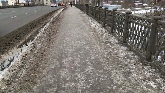 Похолодание и образовавшаяся наледь на дорогах и тротуарах заставили вспомнить о том, как пешеходам непросто перемещаться по Петрозаводску. Скользко! В редакцию "Карелия.Ньюс" обратились жители города, которые недовольны тем, что поверхность моста, соединяющий Кукковку и Голиковку (на Комсомольском проспекте), в пешеходной части не обрабатывается. Каждый день утром и вечером хожу пешком через этот мост и ещё ни разу не видела, чтобы какая-то подсыпка на нём была, - рассказала нашему порталу горожанка Елена Сергеевна. - Так скользко! Хорошо бы держаться за перила, но к ним, честно говоря, подходить страшновато. Они невысокие (вот сделали бы их повыше или сетку какую поставили, как на Гоголевском мосту), при неловком движении можно, как мне кажется через них перелететь и прямо на ж/д пути шмякнуться". Наледь на мосту получает своё продолжение и на проезжей части. Испытанием для пешеходов становится участок Комсомольского проспекта от моста до автостоянки и почты на углу Невского и Комсомольского. Я не Карлсон, лететь от моста до Невского не могу, - возмущается пенсионерка Ольга Николаевна. - Да, есть тропиночка около двухэтажных домов на Комсомольском, по ней, конечно, можно выйти на тротуар, но как этот экстремальный участок преодолеть? Тут убиться можно! Поэтому приходится идти по проезжей части, она скользкая, рядышком огромный поток машин и автобусов. А если человек поскользнется, то тут не то что ушиб или перелом, а гибель неминуемая, потому что сразу угодит под колеса. Вот кому на это жаловаться?". Это та самая тропиночка между домами на Комсомольском, которая ведет к тротуарам. Кстати, гололед и на автостоянке, которая около почты. Чтобы людям дойти до своего автомобиля, нужно очень постараться. Но если за состоянием проезжей части и пешеходных дорожек на мосту должен следить "ТехРент", то за территорию автостоянки подрядчик не отвечает, поэтому подсыпку он делает вдоль Невского как раз от той самой стоянки. Портал "Карелия.Ньюс" сегодня уточнил у исполнительного директора "ТехРента", какое количество техники сейчас задействовано в карельской столице. Ежесуточно в город выходит на уборку разное количество техники. Сейчас машин меньше задействовано, так как техника работает только на подсыпке. Если говорить по тротуарам, то в данный момент задействовано 5 единиц техники, - сообщил Александр Сорокин. - Мы постоянно мониторим состояние городских улиц, у нас мастера на каждом участке смотрят, что и как". Я как жительница Кукковки не могла не спросить у руководства подрядчика, почему для уборки улиц всё время выбирается такое неудобное для жителей время. Сегодня, например, прямо подскочила на кровати в 5 утра, потому что услышала жуткий скрежет на нашей Сортавальской. Даже подумала, что в город вошла военная техника, такой шум стоял. Когда выглянула в окно, увидела, что это грейдер чистит проезжую часть. Не такой уж там скрежет стоит, просто убираем наледь, - сказал Александр Алексеевич. - Там с 0 до 6 утра действует знако "Стоянка запрещена", поэтому поэтому техника работает именно в то время, когда нет машин. Такая работа под знаками проводится в каждом районе".