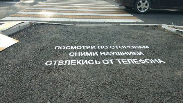 Предупреждающие надписи появились перед пешеходными переходами в Чите