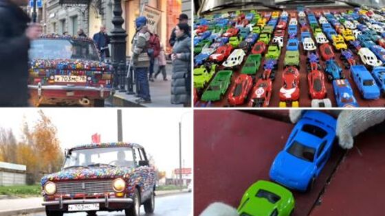 Блогеры обклеили ВАЗ-2101 детскими машинками и провели тест-драйв