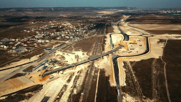 В Крыму наполовину построили самый большой участок трассы "Таврида" в районе села Железнодорожное Бахчисарайского района. Движение здесь будет четырехполосным, стороны разделены. Дорогу строят вместе с транспортной развязкой трассы и железной линией Симферополь-Севастополь, над съездом. Максимальная высота над уровнем земли - 16 метров. Об этом сообщили в пресс-службе министерства транспорта Республики Крым. Длина правого участка дороги - 390 метров, левого - 385 метров. Рабочие собирают металлоконструкции пролета, плиту проезжей части. Перед укладкой асфальта ее забетонируют, сделают переходные плиты и гидроизоляцию. Развязка нужна для того, чтобы на "Тавриду" можно было заехать из ближайших поселков. "На развязке ведется разработка грунта, устройство земполотна и основания дороги под щебеночно-песчаную смесь. Ее общая готовность составляет 75%, транспорт поедет по ней в следующем году", - говорится в сообщении.