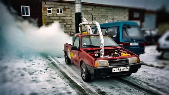 Отныне не нужно платить за дорогостоящий бензин. Достаточно лишь свыкнуться с рядом незначительных неудобств. Что за факторы дискомфорта, сопряженные с переводом бензинового ДВС на паровую тягу? Сущие пустяки! Во-первых, автомобиль придется превратить в кабриолет с полным отсутствием жесткости кузова. Довольно сомнительный "тюнинг", учитывая российские зимы, но когда морозы и сложности нас останавливали? Во-вторых, вашими постоянными спутниками будут облака пара, уподобляющие транспортное средство ракете, готовой взмыть в звездную даль. Другое дело, что машина напоминает отнюдь не космический корабль, а антиутопический гибрид печки из русских сказок и оборудования теплотрассы. Но ведь оригинально, свежо и эффектно! В-третьих, любая небольшая горка станет непреодолимым препятствием, хотя и это ерунда – всегда можно попытаться взять ее с десятой попытки или найти объезд. Видео: Гараж 54