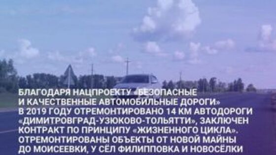 В Мелекесском районе подвели первые итоги дорожных работ уходящего года и наметили планы на год грядущий. Так, благодаря нацпроекту «Безопасные и качественные дороги» в 2019 году было отремонтировано 14 км автотрассы Димитровград – Узюково – Тольятти, на реконструкцию и содержание которой впервые был заключён контракт по принципу «жизненного цикла». В нормативное состояние приведены участки от Новой Майны до Моисеевки, дороги у сёл Филипповка и Новосёлки. Большая работа была также проделана на участке Дивный – Уткин – Новосёлки: здесь рабочие отремонтировали 7 км дорожного полотна. При проведении работ во главу угла ставилось обеспечение безопасности участников дорожного движения, поэтому ремонтом проезжей части работы не ограничились. Так, на транзитных участках в сёлах Русский Мелекесс и Моисеевка было смонтировано освещение, на протяжённости 89 км нанесена дорожная разметка, при повороте на Новую Майну с автодороги Ульяновск – Димитровград – Самара установлен светофор. Благодаря нацпроекту «Безопасные и качественные автомобильные дороги» финансирование ремонта и содержания дорог в Мелекесском районе продолжится и в следующем году. Также будут выделены средства на дорожную разметку, обустройство автопавильонов и новое освещение. С масштабом проведённых работ на месте ознакомился губернатор Сергей Морозов. Без нареканий не обошлось. «Хочу подчеркнуть, что ремонт дорог местного значения - ответственность районной администрации, - отметил глава региона. - В 2019 году из 31 запланированного объекта - большинство ремонтных работ выполнено. Однако по четырём запланированным участкам даже не приступили к работам, по двум объектам контракты находятся на стадии расторжения. На мой взгляд, это безобразное попустительство со стороны чиновников Мелекесского района. Ситуацию необходимо исправить и доделать обещанные людям участки. Считаю, что планы на 2020 год по ремонтным работам дорог местного значения необходимо еще раз обсудить с населением».