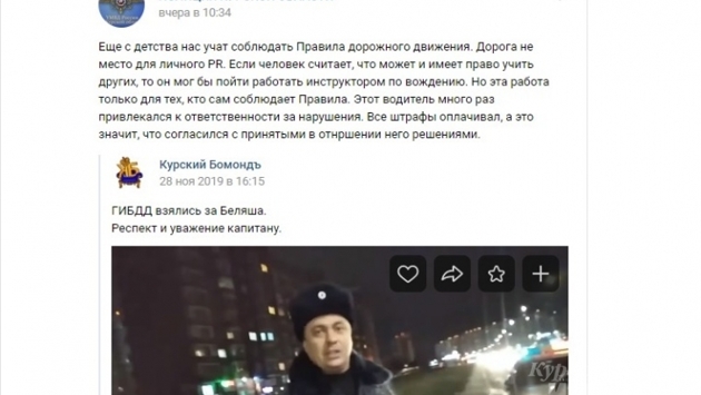 В сообществе "Курский Бомондъ" "ВКонтакте" появился новый ролик с участием Сергея Беляева и капитана полиции Совсем недавно автор канала Kursk sanitar на YouTube принял участие в шоу "Мужское/Женское" на Первом канале. Телеведущий Александр Гордон призвал ГИБДД Курской области обратить внимание на дорожного мстителя. На днях в интернете появилось новое видео с участием Сергея Беляева. На кадрах видно, как сотрудник правоохранительных органов останавливает авто Санитара. Оказалось, что у санитара не горит габарит слевой стороны и не работает подсветка госномера. За это ему выписали штраф. Судя по комментарием Сергея Беляева на видео, он уверен, что в ГИБДД открыли на него охоту. - Что команда поступила на меня охоту открыть, товарищ капитан, - спрашивал он. - Никак нет, - отвечал ему представитель закона. - Мне кажется у вас завышена самооценка. В группе полиции Курской области "ВКонтакте" сделали репост ролика и оставили комментарий. - Еще с детства нас учат соблюдать Правила дорожного движения. Дорога не место для личного PR. Если человек считает, что может и имеет право учить других, то он мог бы пойти работать инструктором по вождению. Но эта работа только для тех, кто сам соблюдает Правила. Этот водитель много раз привлекался к ответственности за нарушения. Все штрафы оплачивал, а это значит, что согласился с принятыми в отнршении него решениями, - прокомментировали в группе полиции.