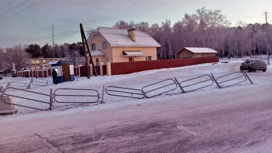 В Зауралье на перекрёстке дороги поставили мятый забор. Он мешает движению
