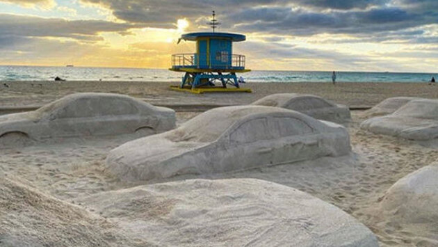 Художник из Аргентины Леандро Эрлих (Leandro Erlich) создал из песка скульптуру, изображающую большую автомобильную пробку — с 66 машинами. Он назвал свою работу «Порядок значимости» (Order of Importance). Посмотреть эту публикацию в Instagram Публикация от Leandro Erlich official (@leandroerlichofficial) 6 Дек 2019 в 6:34 PST Как указывается, на создание инсталляции Эрлих потратил около двух лет; при этом проект обошелся приблизительно в миллион долларов. Отмечается, что на скульптуру было потрачено примерно 330 тонн песка. Посмотреть эту публикацию в Instagram Great video by @brettsylvia play with sound Публикация от Leandro Erlich official (@leandroerlichofficial) 4 Дек 2019 в 7:39 PST Среди проблем, на которые Эрлих хотел указать с помощью данной инсталляции, — перегруженность автомобилями дорог в Майами и в других больших городах, а также перегруженность пляжей людьми; кроме того, инсталляция поднимает проблему повышения уровня океана, связанного с глобальным потеплением (на эту проблему должно указывать то, что некоторые из машин частично погружены в песок).