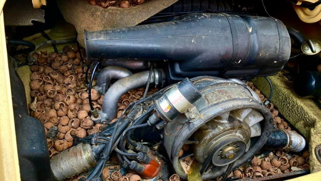 Швейцарский дилер Porsche поделился фотографиями заброшенного 911 Targa, который приспособили для хранения запасов белки. Забирая спорткар 1974 года выпуска на реставрацию, сотрудники женевского центра Porsche обнаружили в подкапотном пространстве целый склад грецких орехов и скорлупы. Белка превратила моторный отсек Kia Sorento в склад с орехами На своей страничке в социальной сети Facebook, швейцарский дилер написал, что «маленькие и очень-очень жадные белки долгие годы использовали двигатель Porsche 911 Targa 2.7 в качестве убежища». Теперь грызунам в пригороде Женевы придётся искать более надёжное место для хранения запасов. Porsche Genève, Facebook Porsche Genève, Facebook Если не считать курьёза с моторным отсеком, 45-летняя Тарга находится в неплохой сохранности. Ожидается, что специалисты Porsche приведут в порядок узлы и агрегаты спорткара после долгого хранения под открытым небом. Швейцарский дилер не поделился подробностями восстановления спасённого у белок экземпляра. Под капотом «девятьсот одиннадцатых» второй серии Targa 2.7 располагается 2,7-литровый атмосферный мотор с воздушным охлаждением мощностью 150 или 175 лошадиных сил. Медведь угнал Subaru и устроил ДТП Случаи, когда животные используют автомобили в качестве хранилища для еды или места для постоянного обитания не редки. В прошлом году американский автовладелец из Мичигана обнаружил в моторном отсеке своей машины 22 килограмма сосновых шишек. Мужчина с юмором отреагировал на произошедшее и посоветовал другим автолюбителям почаще заглядывать под капот, поскольку «белки бывают очень коварными». Источник: Porsche Genève, Facebook Львы и гепарды с четырьмя колесами