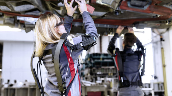 Примерно 60 сотрудников завода Audi в Ингольштадте помогают компании тстировать экзоскелеты компаний Ottobock и Skelex — в покрасочном и сборочном цехах и в цехе по изготовлению инструментов. Оба экзоскелета — Paexo (от Ottobock) и Skelex 360 (от Skelex) — это механические экзоскелеты, которые носятся на плечах подобно рюкзаку и держатся с помощью ремня в районе таза. Они должны помогать при работе, выполняемой руками над головой. Как указывается, это не первые тесты экзоскелетов Audi: компания отметила, что получила «перспективные результаты» от прошлых проектов. Некоторые другие автопроизводители также заинтересованы в идее внедрения экзоскелетов для помощи сотрудникам заводов, в частности компании Ford и Hyundai.