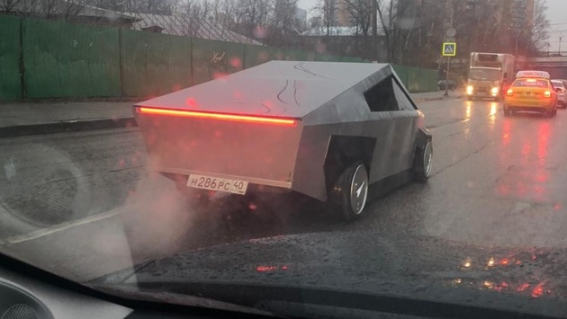 Если приглядеться, то сразу видно, что пойманный пользователями соцсетей "российский Cybertruck" хорошо выдерживает стиль своего американского исходника. Даже колесные колпаки - и те в тему Tesla. Но все же самоделка отличается и пропорциями, и колесными арками, и маленькими колесиками - не сравнить с огромными "катками" настойщего "Кибертрака". Что стало основой для это машины пока не сообщается. Но уже известно, что этот "Кибертрак" точно не последний. Как минимум несколько автоблогеров в России уже заявили, что строят свои реплики нашумевшей новинки. Настоящий же Tesla Cybertruck ранее уже засекли во время его поездки по 405-му шоссе в США. В опубликованном видеоролике пикап уверенно движется по магистрали, однако рассмотреть, кто именно находится за рулем, не удается. Возможно, именно в таком виде пикап отправится в производство. К слову, производственную программу, по слухам, Илон Маск тоже уже пересмотрел. Ранее было обещано, что базовая модификация пикапа с одним мотором появится чуть ли не первой, а сейчас, по некоторым данным, запуск ее производства отодвинут на 2022 год, при этом самая мощная версия с тремя электромоторами начнет сходить с конвейера в 2021 году. Возможно, это связано не только с желанием начать продажи нашумевшего пикапа с более дорогих моделей, но и с предпочтениями покупателей. Ранее сообщалось, что в списке предварительных заказов доминируют как раз наиболее мощные модификации Tesla Cybertruck с двумя и тремя электромоторами, а одномоторное исполнение выбрали всего 15-17% заказчиков.