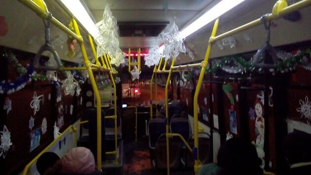 В Кургане автобусы украсили снежинками, над которыми смеялся Ургант
