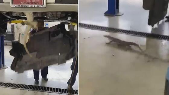 Работники автосервиса, чтобы освободить ящерицу, спрятавшуюся в недрах автомобиля, подняли на подъёмнике транспортное средство и открутили защиту картера. Один из участников спасательной операции запечатлел, как варан, лишившийся точки опоры, вынужден был покинуть своё укрытие и устроить бешеный забег по территории автомастерской. Видеоролик, запечатлённый в конце декабря в сервисном центре, был опубликован на странице тайского автомобильного сообщества в Fасеbооk, где привлёк внимание более 100000 интернет-пользователей.