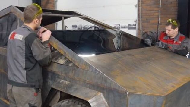 Футуристический пикап Tesla Cybertruck никого не оставил равнодушным. Наряду с негативными эмоциями во многих странах стали появляться любительские копии. Не стала исключением и Россия. Умельцы из ателье «Гараж 54» решили предложить свой вариант Cybertruck с прямыми очертаниями кузова. За основу взяли старенький УАЗ, поскольку он ближе всего подходит по размеру. Для рамы было использовано несколько метров металлического уголка. Для каркаса задействовали профиль. Затем его обшили листом, опять же из металла. Больше всего хлопот доставил карданный вал. Вначале была идея его удлинить вставками из труб. Однако в итоге карданный вал был сделан на стороне под заказ. Получившийся экземпляр почти готов к тестированию в уличных условиях. Осталось только оборудовать оптику и покрасить получившийся кузов. Мастера признаются, что бюджет работы оказался более чем скромным. Во всяком случае с оригинальным представителем Tesla его не сравнить.
