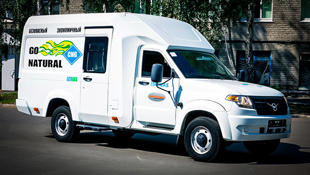 Ульяновский автомобильный завод представил грузопассажирский "Профи", созданный совместно с компанией "Автодом" и вмещающий до восьми человек. На шасси грузовика УАЗ "Профи" установили корпус из стеклопластика с дополнительной тепло- и шумоизоляцией, в котором можно перевозить как пассажиров, так и грузы. Грузовой отсек отделен от пассажирского перегородкой. Сиденья дивана, установленного в фургоне, оборудованы трехточечными ремнями безопасности, также имеется жидкостный отопитель и три плафона освещения. В движение фургон приводит битопливная силовая установка с газобалонным оборудованием. Между рамой и кузовом можно продольно разместить от двух до четырех 50-литровых баллонов, которые позволяют преодолевать без дозаправки до 1 тыс. км. Такой фургон УАЗ предложит в двух модификациях: со сдвижной перегородкой и креслами Riviera и со стационарной перегородкой. В пассажирском отсеке можно установить пять, семь или восемь сидений. Стоимость новинки пока неизвестна, как и дата ее появления на рынке. Напомним, минимальная цена базового грузовика "Профи" составляет 759 тыс. руб. Во вторник на сайте Роспатента появились изображения очередной детали, проливающей свет на оснащение "Патриота" нового поколения, прозванного "русским Prado".