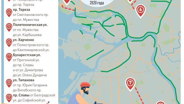 В Петербурге построят почти 22 километра новых веломаршрутов