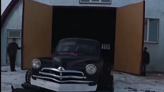Жители Сарова "переобули" раритетный автомобиль "Победа" в "гусеницы" вместо колес. Видео дрифта чудо-агрегата они выложили в социальных сетях. На кадрах видео "Победа" на скорости совершает маневры по заснеженной промышленной территории. "Гусеницы" помогают ретро-автомобилю с легкостью преодолевать сугробы и уверенно двигаться вперед, вздымая за собой клубы выхлопов и снега. Ранее сообщалось, что Дороги Арзамаса чистят снегоуборочные «Нивы». Фото: кадры видео Алексея Прокопенко в группе "Арзамас 1578" в соцсетях.