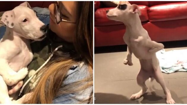 С глазами, полными грусти, щенок с пятью лапками прощался со своими хозяевами