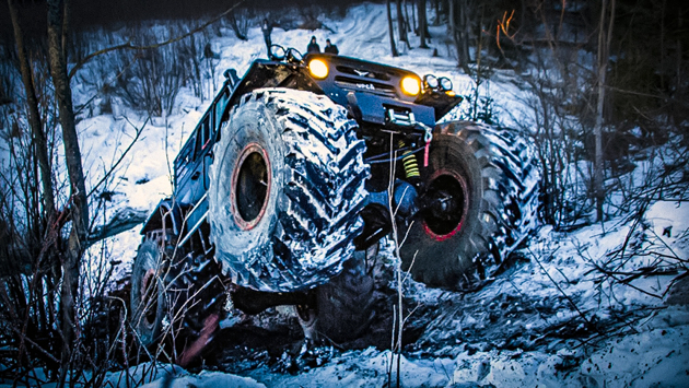 Это не УАЗ "Хантер", а "УРСА Ермак" – экстремальный вездеход, который бросил вызов модифицированным Jeep Wrangler и Cherokee.От вида чудовищного внедорожника, отдаленно напоминающего УАЗ, бывалые джиперы, похоже, впали в ступор – громадина с трудом помещается в кадр и имеет ультимативный потенциал. Как заявляет производитель, автомобиль предназначен для передвижения по слабонесущим грунтам, снежной целине, пересеченной местности в условиях отсутствия дорог. Выполняемые задачи – перевозка грузов, материалов, спец. оборудования, передвижение персонала, ремонтных и инспекционных бригад". Сильное впечатление оставляют шины внешним диаметром 67 дюймов. Для сравнения, самыми большими колесами среди Jeep, участвовавших в покатушках, мог похвастаться Wrangler JK – у него они "40-е".