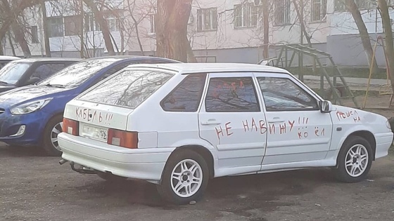 «Кобель, ненавижу!» – такие надписи оставила на машине обиженная девушка в Ессентуках Не простившая измену своему молодому человеку девушка решила отомстить ему и оставила на его машине надписи «Кобель! ненавижу!» Фотография изуродованной «четырнадцатой» опубликована в группе «Наши Ессентуки». На ней отчетливо видно, как на отечественной легковушке белого цвета красуются неприличные надписи, сделанные красной краской. Подписчицы паблика поддержали поступок обманутой ессентучанки, однако парни встали на защиту владельца ВАЗа, сказав, что машина тут не причем. «Свои обиды нужно высказывать лично, а не портить имущество», – возмутились ессентучане.