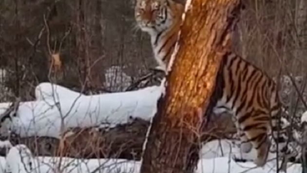 В соцсетях появились видео гуляющего по лесу тигра. Оперативная съемка была сделана проезжающими мимо молодыми людьми, сообщает ИА DEITA.RU. Точное место дислокации дальневосточного красавца не уточняется, но предположительно возле поселка Руднево Приморского края. Тигр отдыхал практически возле дороги, как комментируют заснявшие его молодые люди, всего около 8-10 метров от дорожной полосы. Животное вело себя не агрессивно и невозмутимо наблюдало за съемками. Ранее уже говорилось о росте популяции амурских тигров в Еврейской АО. Также на прошлогоднем юбилее Дня тигра губернатор Приморского края Олег Кожемяко отметил, что благодаря Центру «Амурский тигр» удалось добиться значительных результатов по увеличению популяции дикой кошки почти в 10 раз.