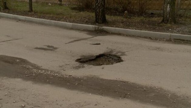 Глубокая яма на улице 8 Марта приносит неудобства автолюбителям