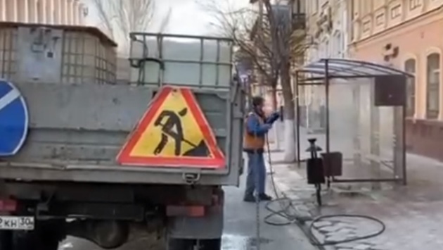 В Астрахани дезинфицируют леерные ограждения и остановки