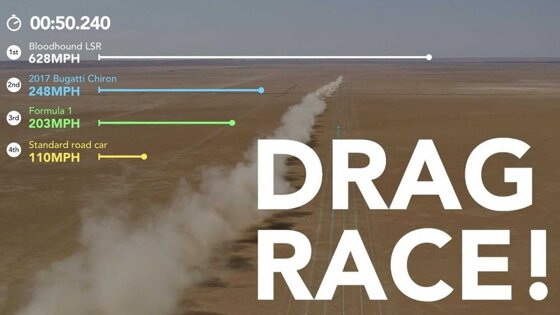 Видео: кто быстрее - Bloodhound, Формула 1 или Bugatti Chiron?