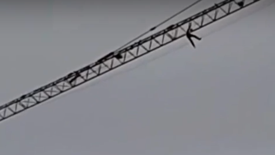 Отчаянный парень повис на стреле башенного крана на Тимирязева