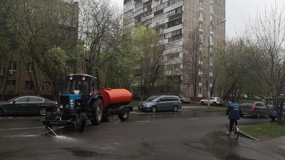 Работники ЖКХ в Академическом районе проводят дезинфекцию дорог и тротуаров