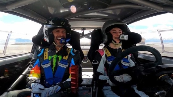 Лия, 13-летняя дочь Кена Блока, продемонстрировала талант, унаследованный от отца: девочка только-только научилась водить Ford Focus RS на «механике» и уже спустя три дня выехала на трек на папином Ford Escort с 355-сильным мотором. Кен Блок показал «Джимхану», снятую на пленку Заднеприводный хэтчбек Ford Escort появился у Кена Блока в 2015 году -- он пересел на него с полноприводного купе Hoonicorn, сделанного в стилистике «Мустанга» 1965 года. Трехдверка, подготовленная для «Джимханы», укомплектована 2,5-литровой атмосферной «четверкой» от Millington, которая работает в тандеме с шестиступенчатой секвентальной коробкой передач. Именно этот автомобиль Блок выбрал того, чтобы научить дочку основам дрифта. Судя по ролику, у подростка настоящий талант -- после нескольких попыток Лии удалось объехать конус в дрифте и она удостоилась аплодисментов Кена. Блокмашины