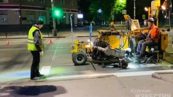 Курские дорожники продолжают наносить дорожной разметки термопластиком. Чтобы не создавать проблемы автомобилистам, работают вечером и ночью. Работы ведутся на улицах Ленина, Челюскинцев, Карла Маркса, на проспектах Дериглазова и Надежды Плевицкой, на площади Перекальского. - Функциональная долговечность термопластика – один год. Как показывает практика, на отдельных участках дороги эти свойства сохраняются дольше, - рассказал председатель комитета дорожного хозяйства Денис Ходеев.