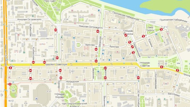 Жителям и гостям областного центра нужно быть готовыми к перекрытиям дорог, что связано с проведением праздничных мероприятий. Во вторник, 23 июня, в центре Кемерова запретят парковку из-за празднования Победы в Великой Отечественной войны. С 20:00 и до конца праздника на следующий день оставлять машины будет нельзя на улице Орджоникидзе (от улицы Н. Островского до площади Советов), проспекте Советском (от Кузнецкого до Мичурина) и улице Кирова (от Ноградской до Н. Островского). В среду, 24 июня, в связи с главным событием праздника – маршем Победы – с 10:00 перекроют проезд на проспекте Советском (от Кузнецкого до Октябрьского), улице Орджоникидзе (от площади Пушкина до площади Советов), улице 50 лет Октября (от Ноградской до площади Советов), улице Кирова (от Ноградской до Н. Островского) и улице Мичурина (от Советского до Ленина). Кроме того, с 10:00 до 16:00 изменится схема движения общественного транспорта. Автобусы будут двигаться по Красноармейской на Кузнецкий и далее своими маршрутами. Троллейбус № 7 будет ходить до "РЕСО Гарантии". От остановки "КЭМЗ" во время парада будут идти автобусы № 168, 166/167, 169/177, 176. Автобусы № 127, №127т, №182э с 14:30 до 16:30 также изменят маршрут в связи с перекрытием Мичурина, сообщили в горадминистрации. Напомним, парад Победы начнется в 14:00. В 23:00 запустят салют.