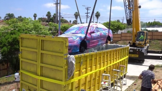 Видео: блогер покрасил Honda Civic, опустив его целиком в гигантский контейнер с водой
