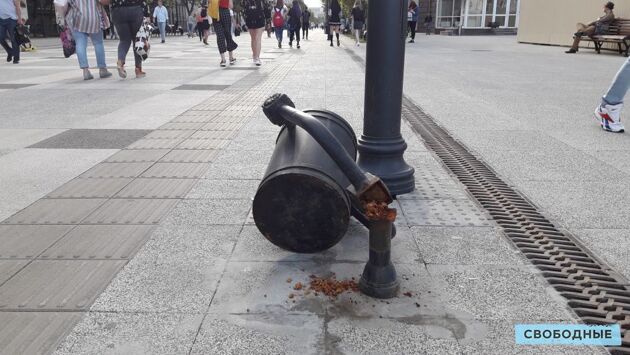 На проспекте Кирова в Саратове установленная полгода назад урна проржавела у основания