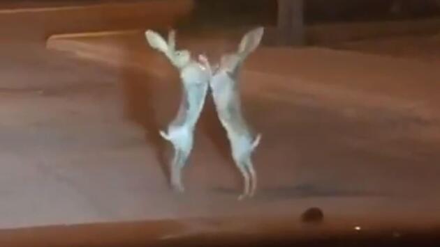 Воинственные зайцы устроили мордобой и перегородили движение на дороге