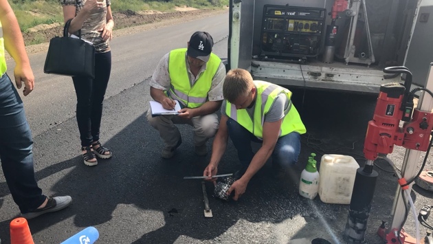 Сегодня специалисты дорожной лаборатории отправились в Воскресенский район. Сотрудники дорожной лаборатории делали отбор асфальтобетонной смеси и уже уложенного асфальта. На участке автотрассы «Воскресенское - Синодское» готово больше 5,5 километров дороги. Должны сделать больше 10 километров. Работы ведутся в рамках национального проекта «Качественные и безопасные автомобильные дороги». Эксперты взяли несколько проб. Для того, чтобы вырезать куски асфальта, используют машину для алмазного бурения. «В лаборатории мы проверяем материал на водонасыщение, прочность и плотность. А сначала измеряем толщину. Здесь верхний слой пять сантиметров, как и предусмотрено проектом, а нижний слой — 7,2 сантиметра, а предусмотрено семь сантиметров. Но в проекте допускается минимальная разница. То есть, по толщине асфальт прошел ГОСТ. Все остальные параметры изучим в течение нескольких дней», - рассказал заместитель начальника отдела качества и лабораторного контроля «Дирекции транспорта и дорожного хозяйства» Алексей Иванов. Проверили специалисты и технологию укладки асфальта. Если подрядчик допускает нарушения, они должны устраняться до того, как примут объект. Всего в настоящее время ведутся ремонтные работы на 37 объектах автомобильных трасс регионального и межмуниципального значения Саратовской области. Завершить ремонт участка автодороги «Воскресенское — Синодское» должны к 31 октября 2020 года. Общая стоимость работ больше 240 миллионов рублей.