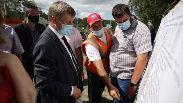 Как доложили мэру Анатолию Локтю на выездном совещании, в каждую сторону трассы добавится по одной полосе. Глава города напомнил, что много споров было насчет того, какой быть развязке на въезде в Академгородок. Из-за дефицита времени и средств было принято решение оформлять плоскостную развязку. По оценке специалистов, она существенно разрядит напряженную обстановку, которая складывается на въезде в Академгородок. - В сентябре будет полностью готово дорожное покрытие, откроется движение. В следующем году будут обновлены светофоры и освещение. В этом году планируем закончить ремонтные работы на всех участках Бердского шоссе. Таким образом, с учетом улицы Фабричной и Красного проспекта за несколько лет мы обновим существенную часть дорог правобережья, - отметил мэр Анатолий Локоть. Развязка на перекрестке Бердского шоссе и проспекта Строителей - один из одиннадцати объектов, где ведется ремонт по нацпроекту БКАД. Работы стоимостью 98 миллионов рублей выполняет подрядная организация "Перлит-Строй". По проекту здесь будет расширена проезжая часть: появится дополнительная полоса для беспрепятственного выезда из Академгородка, водители будут двигаться направо под зеленую стрелку светофора, уступая дорогу только пешеходам. Расширение проезжей части будет и на повороте в Академгородок, увеличится так называемая зона накопления. Автомобили, ожидающие разрешающего сигнала светофора для поворота, не будут загораживать проезд машинам, двигающимся в прямом направлении. Фото: Пресс-центр мэрии Новосибирска На участке протяженностью 750 метров будет обустроена ливневая канализация, которой раньше здесь не было, капитально отремонтированы тротуары, установлены светофоры, опоры освещения, нанесена разметка термопластиком. Директора дорожно-благоустроительного комплекса компании "Перлит-Строй" Николай Лавров сообщил главе города, что работу осложняет большое количество коммуникаций, проложенных под землей. Прежде чем приступить к работе, их нужно перенести. Тем не менее, в сентябре подрядчик намерен закончить все асфальтобетонные работы.