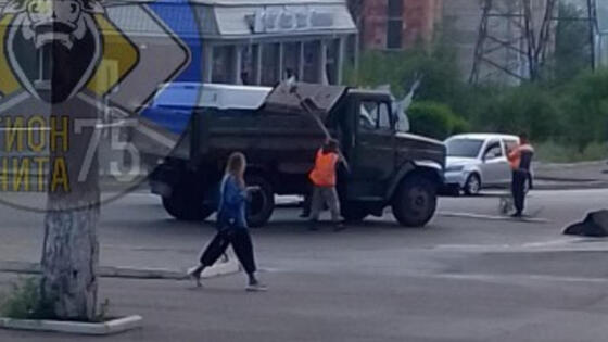 Дорожники демонтируют провалившегося лежачего полицейского напротив ТЦ Царский в Чите