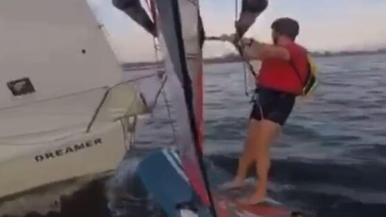 Эпичное столкновение любителя экстремального вида спорта с яхтой, название которой переводится как «Мечтатель», попало в объектив видеокамеры, принадлежащей виндсёрферу. Судя по кадрам видеозаписи, оба участника морского путешествия не следили за курсом своих плавсредств, в результате чего яхта сбила экстремала со своего пути. Впрочем некоторые интернет-пользователи, увидевшие видеозапись на сайте, специализирующемся на организации морских круизов, отнеслись скептически к происшествию и назвали его постановочным.