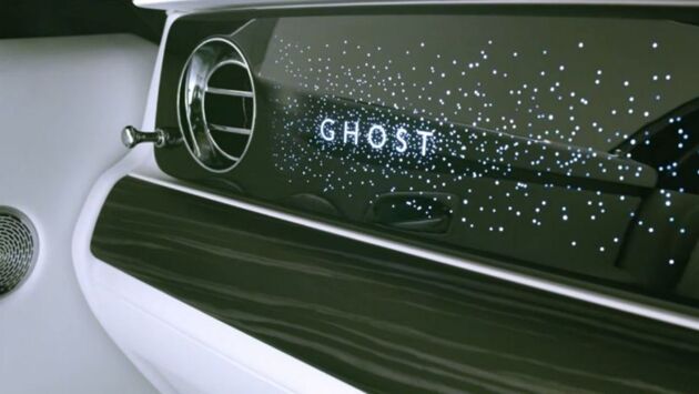 Разработчики компании Rolls-Royce продолжают демонстрировать тизерные снимки новой модели Ghost. Прежде они раскрыли новую систему шумоизоляции салона, а теперь показали уникальную опцию, созданную специалистами подразделения Bespoke. Как известно, модель отличается узором в виде россыпи звезд на потолке. В этот раз специалисты из Гудвуда пошли дальше и разработали надпись в виде слова "Ghost". Окружать ее будет россыпь из 850 звезд, рассказали представители бренда. Эксперты считают, что в будущем ее сделают таким же фирменным отличием, как статуэтку «Дух экстаза» и другие особенности, в том числе решетка «Пантеон». Новая передняя панель полностью соответствует концепции "сдержанной роскоши", которую инженеры разрабатывали на протяжении нескольких лет. Примечательно, что на создание уникальной опции сотрудники Bespoke в общей сложности затратили 10 тысяч рабочих часов, применили 152 диода, температура которых будет соответствовать подсветке часов и других автомобильных приборов. 90 тысяч встроенных точек на каждом диоде будут создавать неповторимый эффект мерцания. При выключении россыпь звезд и название исчезают. Полностью новый Ghost с уникальным интерьером обещают раскрыть уже через пять дней.
