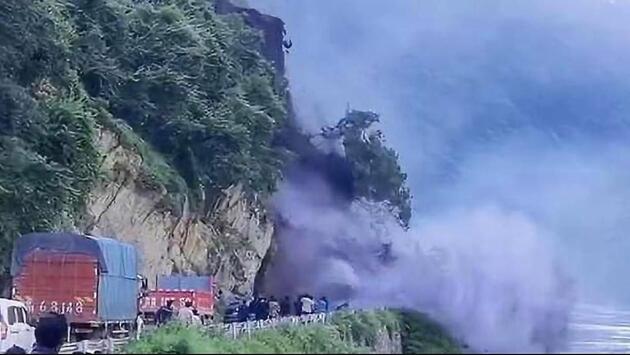 Толпа китайских автомобилистов проследила за сходом оползня, находясь в считанных метрах от него - видео