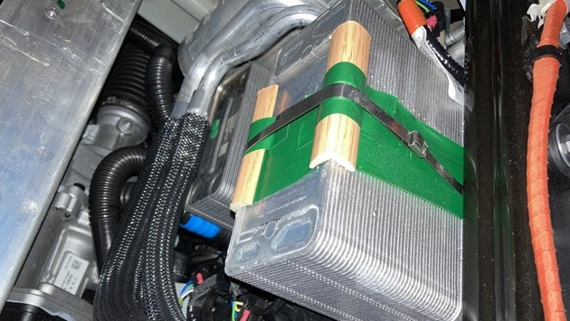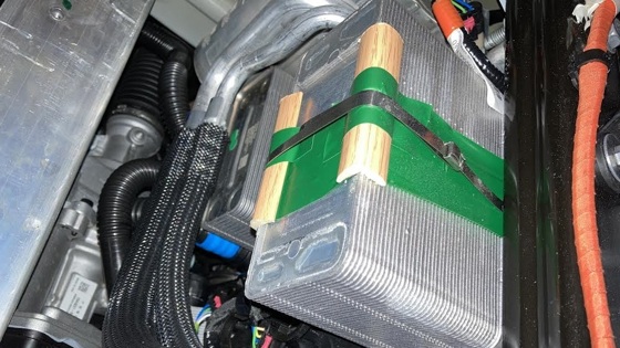 Под крышкой переднего багажника, который отчасти является и капотом, владелец Tesla Model Y нашёл кусочки пластикового «дерева» и изоленту, которыми оказался закреплён радиатор. После того, как авторизованный сервис Tesla в штате Джорджия отказался устранять неравномерные зазоры крышки переднего багажника в рамках гарантии, владелец электрического кроссовера Model Y решил сделать это самостоятельно. Однако под ней он обнаружил, что Tesla делают с применением деталей из строительного магазина: к торцам пластикового корпуса радиатора системы жидкостного охлаждения оказались примотаны обычной зелёной изолентой небольшие кусочки искусственного дерева, которое применяется для отделки домашних интерьеров. Вся эта конструкция была прикреплена к кузову металлическим хомутом. Применение дешёвых материалов из ближайшего строительного магазина вызвало у владельца кроссовера за 55 тысяч долларов искреннее негодование, которым он поспешил поделиться с пользователями форума Tesla Motors Club. Многие владельцы Model Y, к своему удивлению, обнаружили на своих электрокарах аналогичные детали --- отличался только цвет пластикового «дерева» и аккуратность сборки: у кого-то кусочки были отпилены, а у кого-то, судя по неровным краям, просто отломаны. Предположительно, накладки нужны для защиты радиатора от повреждения хомутом. В каталоге запчастей Tesla эти детали отсутствуют.