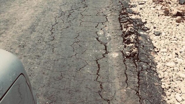 Асфальт вблизи деревни Никуленки, уложенный на глину, потрескался всего через неделю после «ремонта»