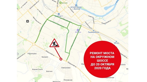 15 сентября Упрдор «Холмогоры» начнет ремонт моста на Окружном шоссе. Он продлится до 20 октября. На время работ будет работать только одна полоса для движения. Для регулировки потоков установят светофор. У автомобилистов будет несколько путей объезда: через ул. Можайского, через ул. С. Преминина с выездом на ул. Можайского или Осановский проезд. Транзитный транспорт может объехать ремонтный участок по новому обходу города.