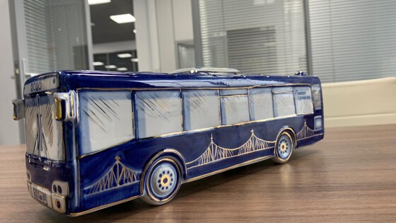 Тверские "синие" автобусы стали сувенирами Гжель