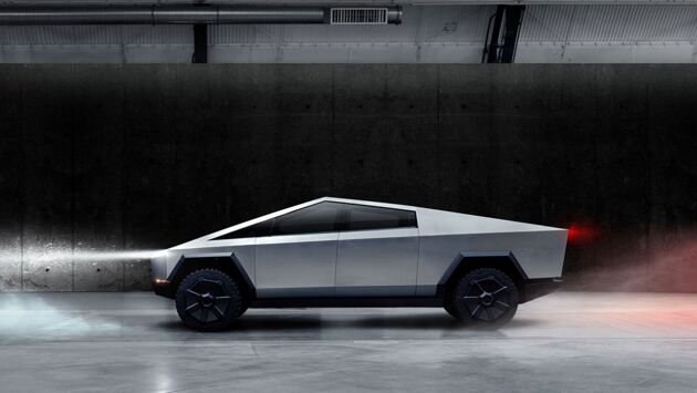 В Сети показали уменьшенную версию Tesla Cybertruck, выполненную из картона